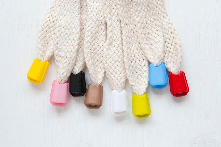 8mm black plastic clip on cord ends with matte finish colour ways. Made in Italy.
